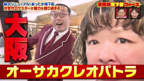なお、最新トレンドの宝庫だった難波の地下街は、11月17日に放送されたバラエティ番組『なるみ・岡村の過ぎるTV』(ABCテレビ)で紹介された。同放送回では「京阪神地下街ウォーズ」と題して、オーサカクレオパトラら次世代ロケスターたちが、関西の地下街の魅力をそれぞれ全力でリポートした。