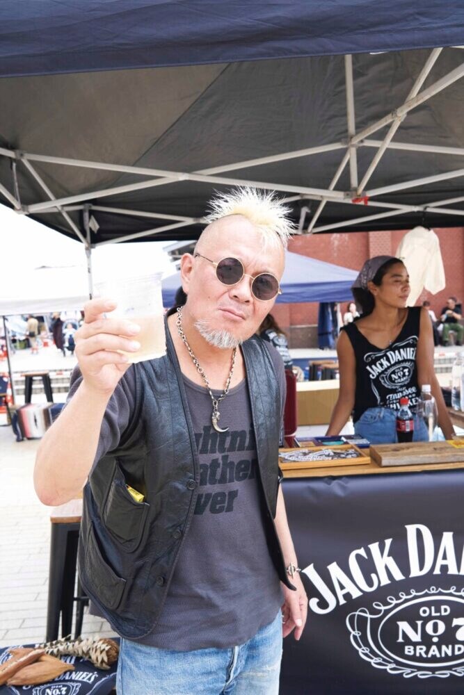 ジャックダニエルブースの一角で、オンラインサロン・モヒカン小川のレザージムのリアル版を開催。オンラインサロン会員や、YouTubeチャンネル『CLUTCHMAN TV』で配信されている「レザーチャンネル」の視聴者、本誌読者、アメカジ業界の本誌お馴染みの面々まで、多くの方々がモヒカン小川の元を訪れた。会場には茶芯レザーコレクションのほか、モヒカン小川の私物の革ジャンも多数展示され、モヒカン小川を囲むような形でジャックダニエルを片手に、レザー談義に花を咲かせた。