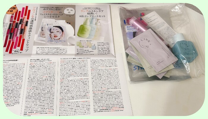 袋から取り出して並べてみると、その贅沢さが一目瞭然。現品のリップやシートマスク、パウチだけじゃなくボトルが並ぶと、やっぱりテンションが上がります。