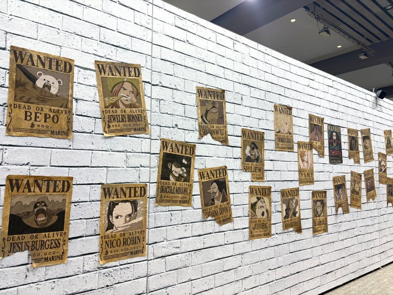 これからルフィたちに何が起きるのか、主題歌『あーーっす!』とともに考える展示となっています。各キャラクターの手配書が貼られており、ここでも記念撮影が可能です。