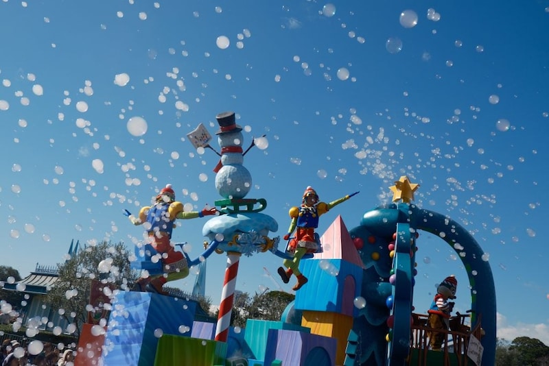 このパレードは、サンタクロースがおもちゃを作るトイファクトリーから始まり、ミッキーやミニーなどのディズニーキャラクターたち、さらには、クリスマスの魔法によって心を持ったくるみ割り人形やテディベア、乗り物のおもちゃたちが続々と登場し、ディズニーらしいユニークでにぎやかでかけがえのないマジカルなクリスマスを演出してくれます。