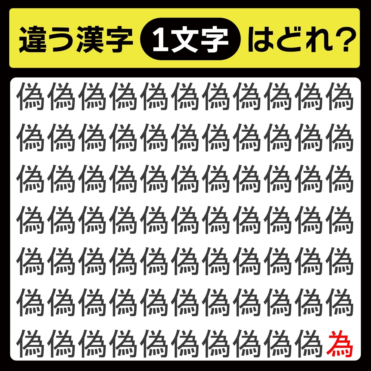 毎日配信中「毎日脳トレ」の時間です! 本日のクイズは「漢字のまちがい探し」に挑戦♪ 同じ漢字が並んでいるように見えますが、実は1つだけ違う漢字が……。よ~く探してみてください!