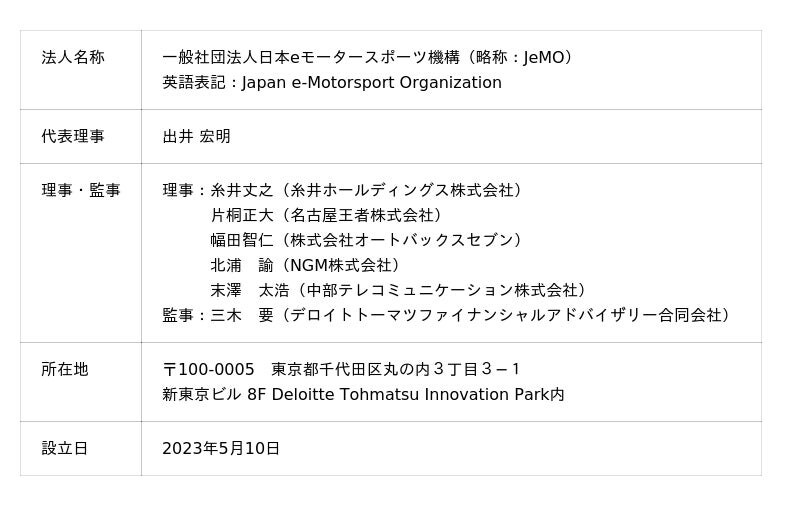 一般社団法人日本eモータースポーツ機構(JeMO)法人概要