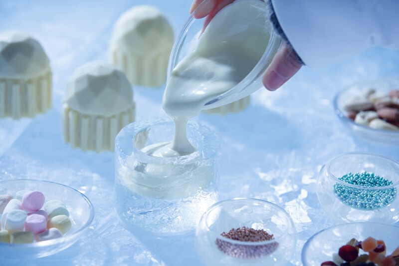 氷のスイーツショップでは、氷の器にチョコレートを流し込んで、寒さで固まる様子を目の前で体験できる「オリジナルチョコレート作り」や、アイスバーに温かいホワイトチョコレートをつけて作る「ホワイトショコラアイスバー」など、寒さを活かしたユニークなスイーツを提供。パリっとした食感に加え、作るのも食べるのも楽しいスイーツが楽しめる。