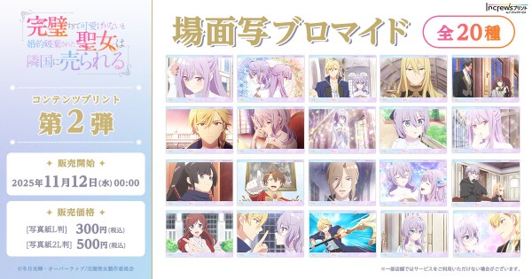 TVアニメ『完璧すぎて可愛げがないと婚約破棄された聖女は隣国に売られる』のコンテンツプリントが、日本全国のコンビニエンスストアを中心とした約55,000店舗のマルチコピー機で一斉に販売開始!