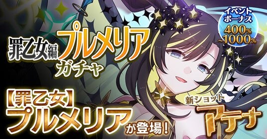 「罪乙女編プルメリアガチャ」では、新ショット「アテナ」を持つ「【罪乙女】プルメリア」が登場します。
