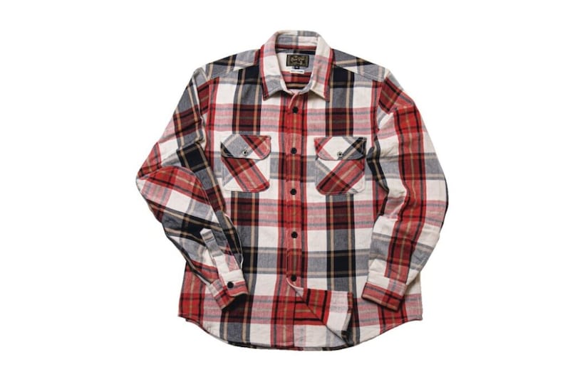 コットン100%のヘビーフランネルを用いた定番のシャツは、なんと20色のカラーバリエーションを展開。日本人体型を考慮したシルエットは、身幅に余裕をもたせながら、ボックス型にすることで短めの着丈に。港で働くワーカーをイメージし、エルボーパッチを配しているのも◎。7990円