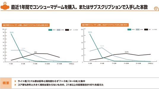 ●直近1年間でコンシューマゲームを購入、またはサブスクリプションで入手した本数