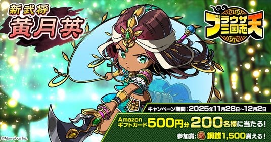 新武将《黄月英》登場を記念して、Amazonギフトカード500円分が合計200名に当たるキャンペーンを開催!