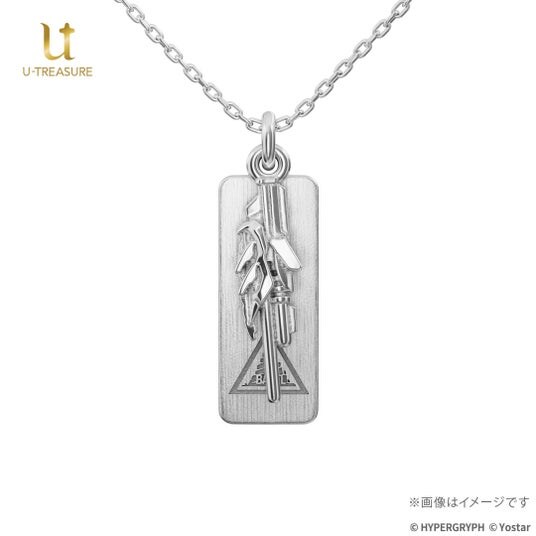 ウィシャデルの武器をチャームのデザインに落とし込んだプレートネックレス。プレート部分には所属陣営(バベル)のエンブレムを刻印しました。
