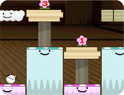 プレイキャラクター「タマネコ」は、プレイを進めるごとに増えていきます。それぞれのタマネコごとに特徴が異なるので、有利に攻略できる場合も。