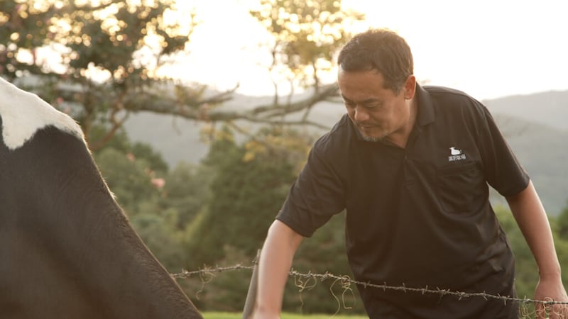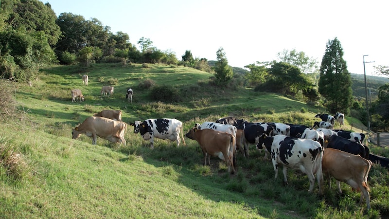 アイスクリームも、このパフェに欠かせないこだわりの素材。真壁さんが「柿の甘みを引き立てますね」と唸ったアイスクリームは、自然放牧でのびのび育った牛のミルクから作られていた。東京ドーム約6個分の広さだという和歌山県海南市の黒沢牧場は、牛舎のない牧場だ。「牛たちは好きな場所でゆっくりと過ごしています」と語るのは酪農家の上芝さん。午後2時45分になると、搾乳の小屋へと集まってくる牛たち。搾りたての牛乳をすぐにアイスへ加工することで、濃厚なのに後味さっぱりに仕上がる。
