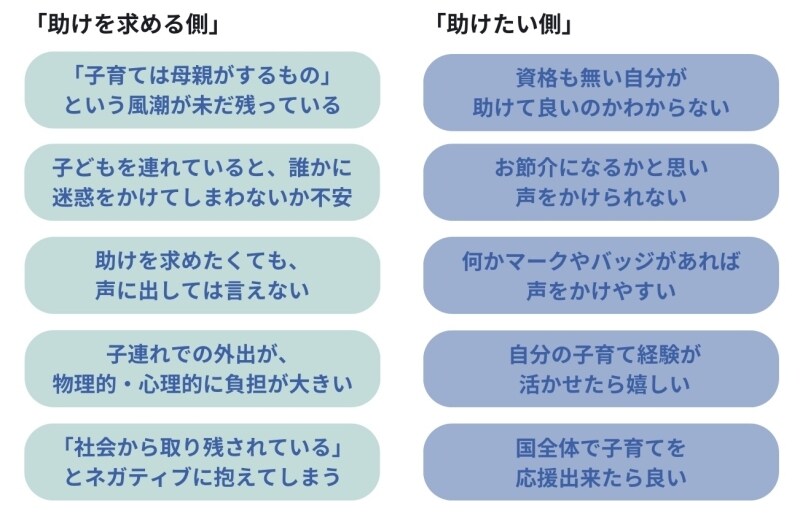 一方で、困っていそうな親子を見かけたときに「声をかけたい気持ちはあるけれど、迷惑かもしれない」「どう手伝えばいいか分からない」と立ち止まってしまう人も多いといいます。手を差し伸べたい側にも遠慮が生まれ、結果として双方が“やさしさを伝えられない”状況が続いてしまうのは、今の子育て環境にある静かな課題のひとつです。