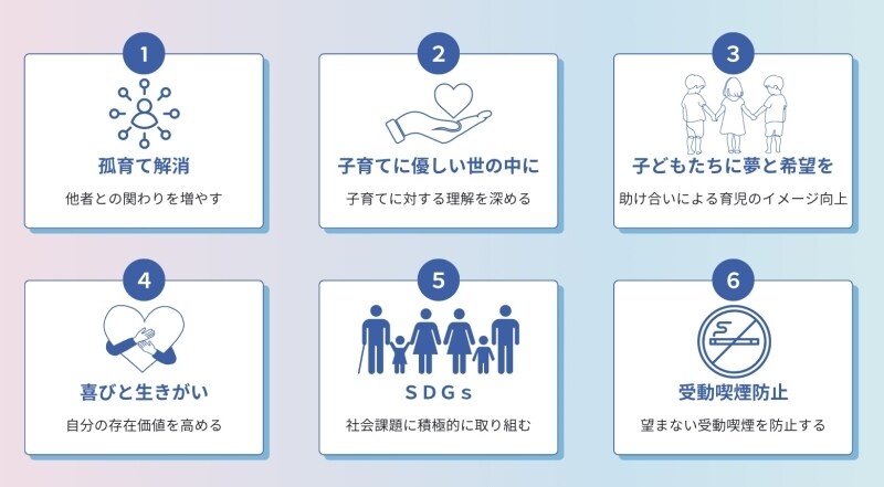 子育てマークが目指すのは、「助けを求めること」と「手を差し伸べること」が、もっと自然に行える社会です。孤独や不安を抱えたままの育児を減らし、地域の中にやさしさが循環する環境をつくりたいという想いが込められています。