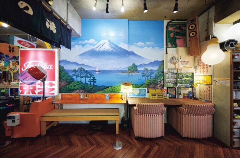 ココには旧いテクニクスや東芝の看板、ラジカセに白黒テレビが当たり前にある。デ・ラ・ソウルのアルバムに、「元気が出るテレビ」のグッズ、さらに風呂桶や富士山の壁画まで紛れ、戸惑いが増す。