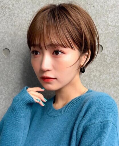 丸みショートは、「短いという印象を出したくない」、「ほんのり可愛さを演出したい」という方におすすめ。なお、どうしても幼見えしやすいスタイルでもあるので、前髪を長めに残すことで甘さの中にほんのり大人な雰囲気をプラスして見た目のバランスを取るようにしましょう。