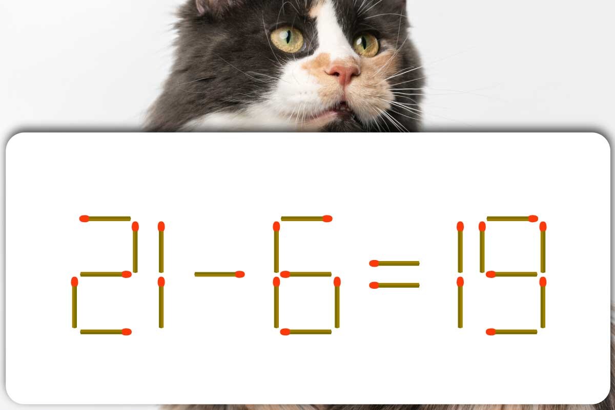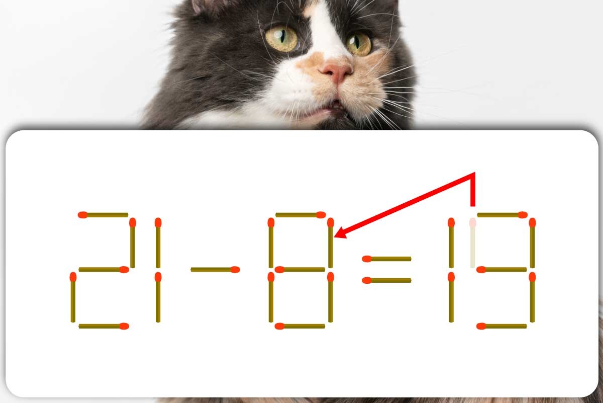 「9」のマッチ棒を1本、「6」に移動させて「8」を作り、「21-8=13」にする。※解答は複数ある場合があります。