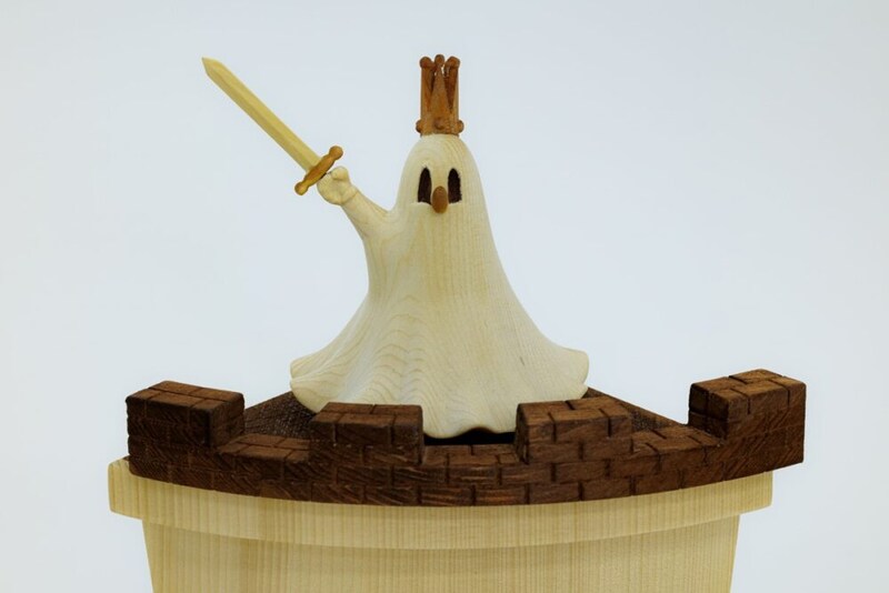 作品集に収録される5編のストーリーの象徴的なシーンを、ジオラマ風の木彫にした。各作品単体では個々のストーリーの世界が、5点を円形に配置すると絵本全体の世界が浮かび上がる。手彩で1つずつ彩色している温かみを感じてもらえたら嬉しい。(アーティストより)