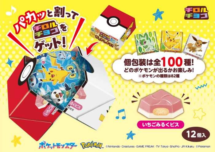 「ポケモンチロルチョコBOX」は、モンスターボール型のパッケージと、いちご風味&サクサクビスケット入りのチョコレートで楽しさと美味しさが満載!
