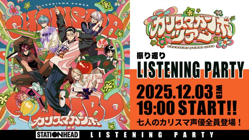 さらに、『カリスマガンボツアー』を締めくくる企画として、12月3日(水)19:00より、Stationheadアプリ内キングレコード公式アカウント(@kingrecords)にて「振り返りリスニングパーティー」の開催も決定した。ライブのセットリストをリアルタイムで聴きながら、チャットでファン同士交流できるオンラインアフターパーティーとなっており、会場に来られなかった人も含めて楽しめる施策となっている。なお、同イベント内では、“七人のカリスマ声優”によるボイスメッセージの放送も予定されており、特別感のあるひとときを堪能できること間違いないのでぜひ参加しよう。