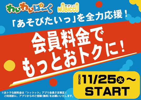 株式会社イオンファンタジー(代表取締役社長:藤原徳也、所在地:千葉県千葉市)は、物価高が続くなかでも子どもたちの「あそびたいっ」という気持ちを全力で応援するため、2025年11月25日(火)より、全国の「モーリーファンタジー」等にある、屋内プレイグラウンド「わいわいぱーく」および「のびっこ」において、新料金体系を導入します。