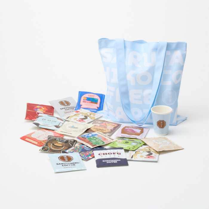 それぞれの福袋には、猿田彦珈琲ならではの限定グッズがセットに!「グランデ」にはトートバッグとセラミックカップが、「トール」には巾着が、「ショート」にはスライダーポーチがついてきます。