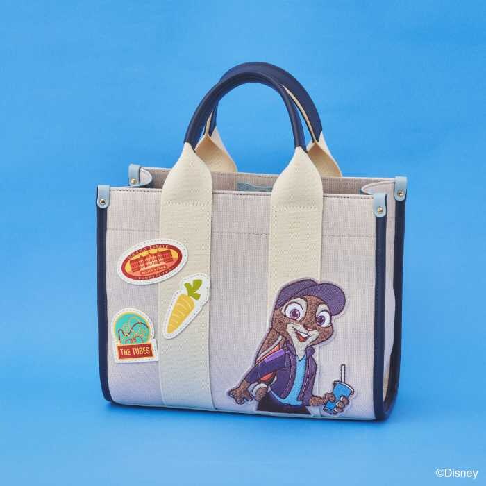 ジュディをイメージしたバッグは、ニンジンモチーフや相良刺繍のワッペンが特徴。ニックの帽子に描かれた魚のアートやネクタイ柄を施したアイテムも、映画の世界観を見事に再現しています。