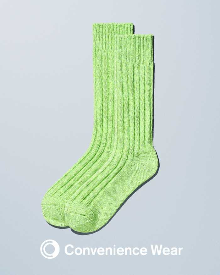足底のパイル編みは肉厚で、暖かさをしっかり感じられます。また、SNSで話題のローゲージソックスには、ライムイエローミックスという差し色カラーが登場。