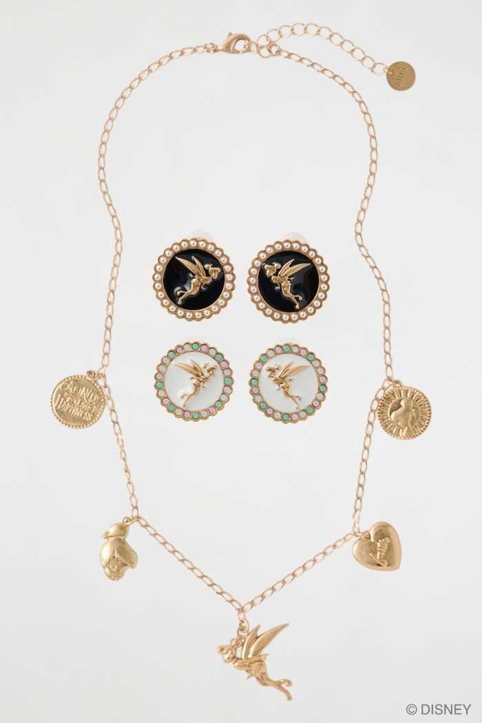 ネックレスはさまざまなティンカー・ベルのモチーフが連なり、身に着けるだけで物語が始まるような特別感を演出します。