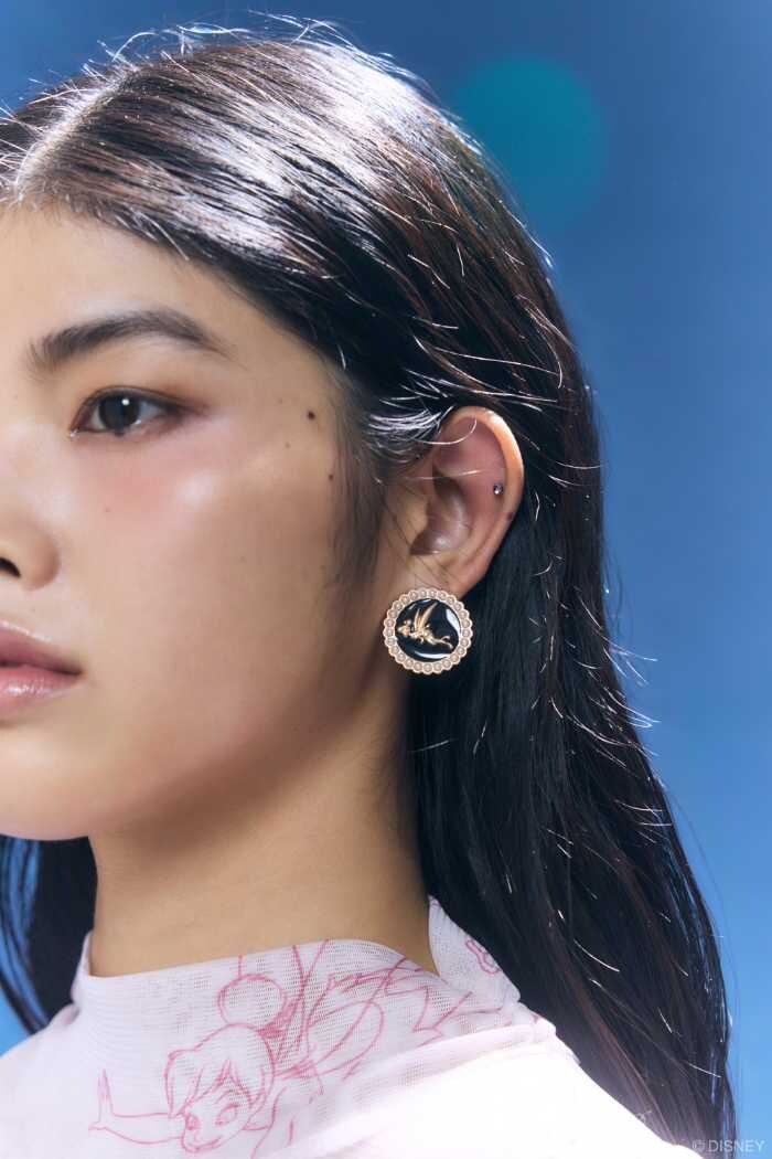 バッグやイヤリング、ネックレスなどのアクセサリー類には、ティンカー・ベルのモチーフや輝きをイメージしたディテールが随所に。