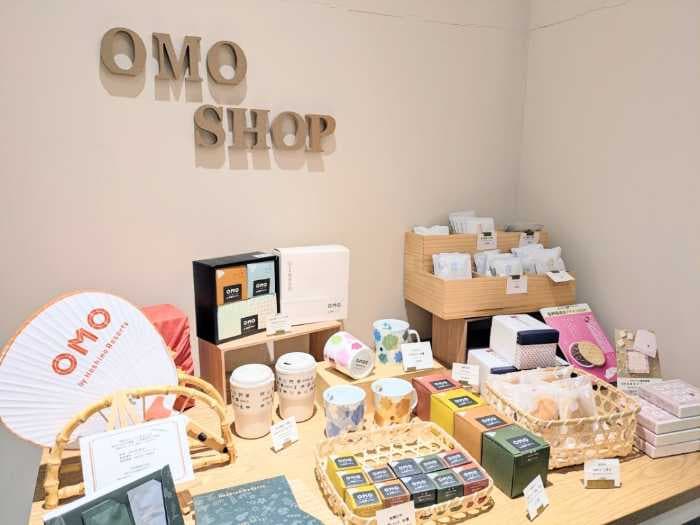 フロント横にある「OMO SHOP」では、お土産が販売されています。自分でもなかが作れるOMO限定デザイン「おもなか」、老舗和菓子屋「二條若狭屋」とのコラボ干菓子などかわいいお土産もあるのでチェックしてみてくださいね。