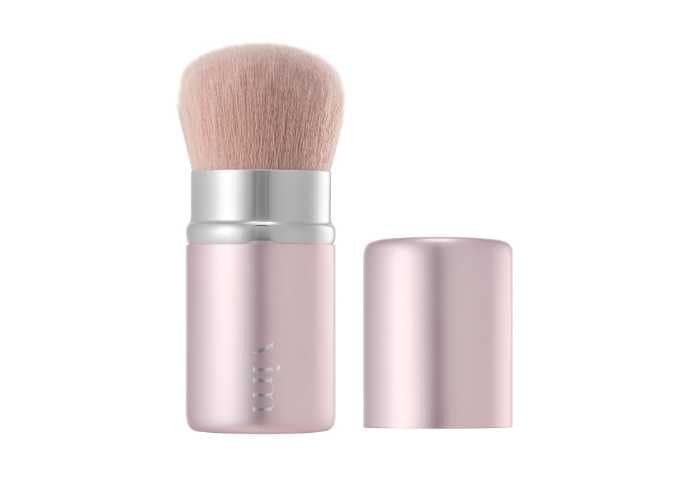 やわらかな肌あたりの「cheek brush」は全長約7.7cmで、スライド式だから持ち運びにも便利です。