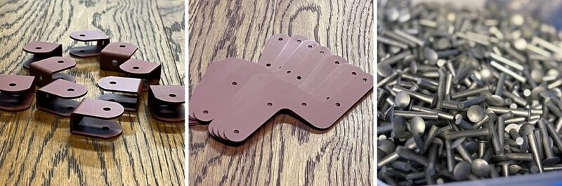 リベットはネジとは違い特殊な機械を使って固定する(カシメる)ため、カシメる為の機械もメーカーに特注で製作してもらった。リベットでパーツを連結・固定することにより、パーツが外れることもなく安全性も担保され、細い木材フレームながら耐荷重100kgを実現することができている。