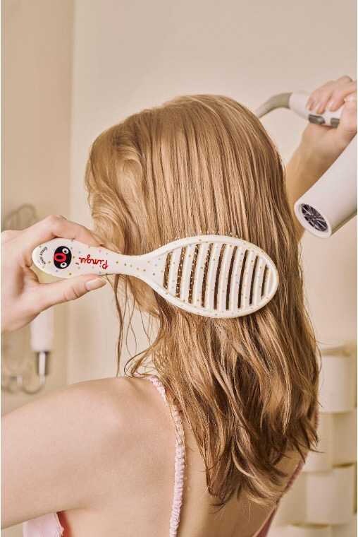 独自の柔軟ピンが濡れ髪も負担をかけずに解きほぐし、トリートメント後のようなまとまりとツヤを実現します。