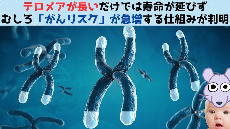 しかしこの研究により、長いテロメアは変異細胞を増やし、がんを起こしやすくしてしまうことが示されました。