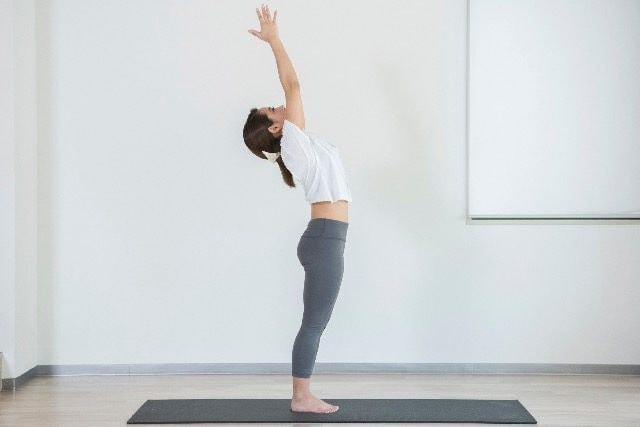 なお、期待する効果をきちんと得るためには「胸を張って、お腹とお尻を引き締めるという正しい姿勢を行うこと」がポイント。身体を後ろに反らせる時には腰から曲げないように注意しましょう。また、両腕が上がりづらい方は真っ直ぐ天井方向ではなく、両腕が斜めに傾いていてもOKです。ただし、その場合もひじを必ず真っ直ぐ伸ばしてくださいね。<ヨガ監修:Minami(インストラクター歴4年)>