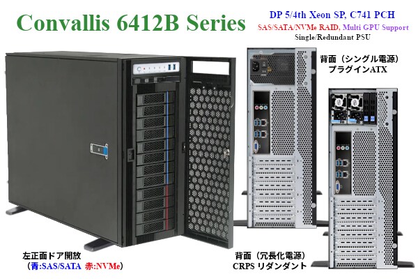 (フルルタワー, DP 5/4th Gen. Xeon SP, Intel C741 PCH, 8*3.5/2.5”+2*2.5” 可脱着ベイ+1*Slim ODDベイ、5*G5 PCIe/CXL1.1(X16)バス, 1*G5 PCIe/CXL1.1(X8)バス, 2*10GbE, 1300W(@200Vac)/1000W(@100Vac) CRPS (1+1) リダンダント電源)