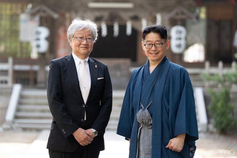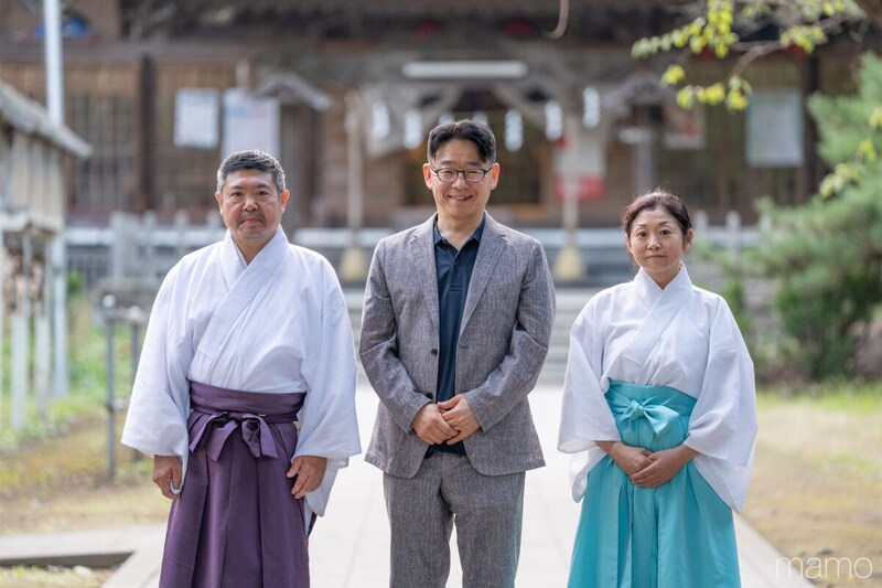 8月2日は神聖な日。神社にとっても大切な騎馬打毬。長者山新羅神社に向かうと、禰宜の柳川泰孝さん、権禰宜の直美さんが出迎えてくれました。2月の「八戸えんぶり」、8月の「八戸三社大祭」という、八戸を代表する二つの祭りの中心地の一つとなる、由緒ある神社です。