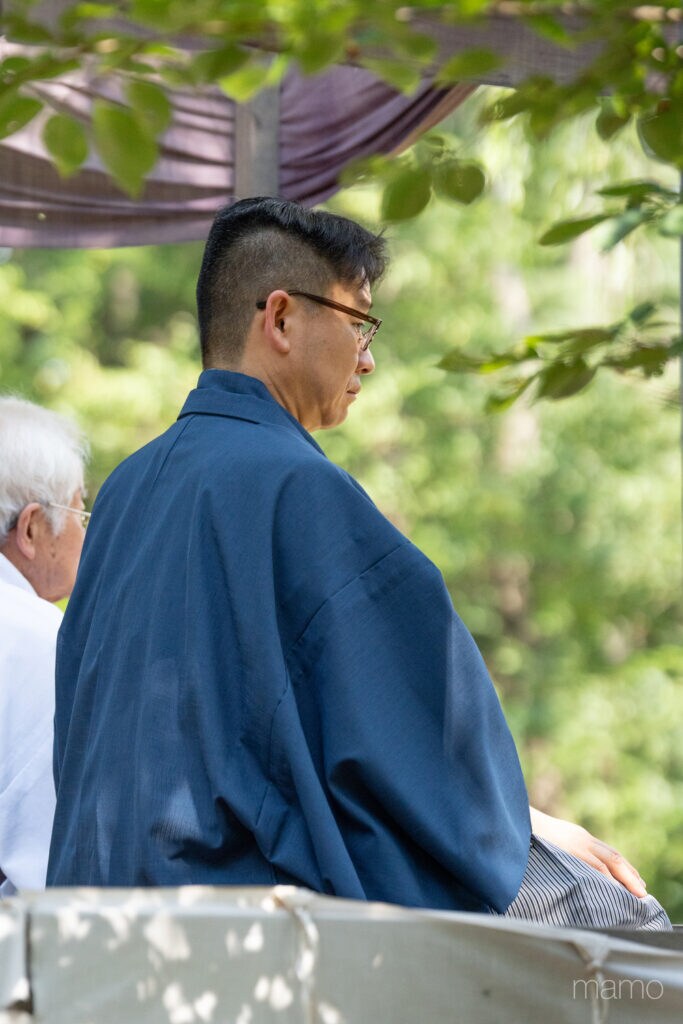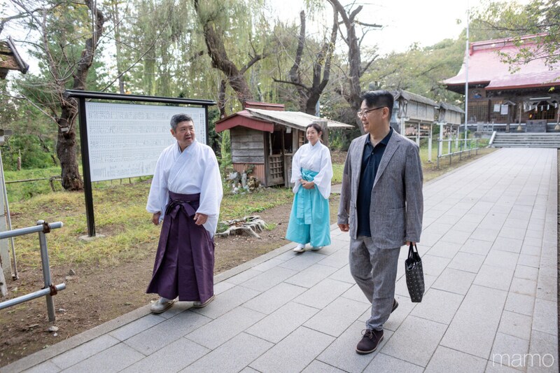8月2日は神聖な日。神社にとっても大切な騎馬打毬。長者山新羅神社に向かうと、禰宜の柳川泰孝さん、権禰宜の直美さんが出迎えてくれました。2月の「八戸えんぶり」、8月の「八戸三社大祭」という、八戸を代表する二つの祭りの中心地の一つとなる、由緒ある神社です。