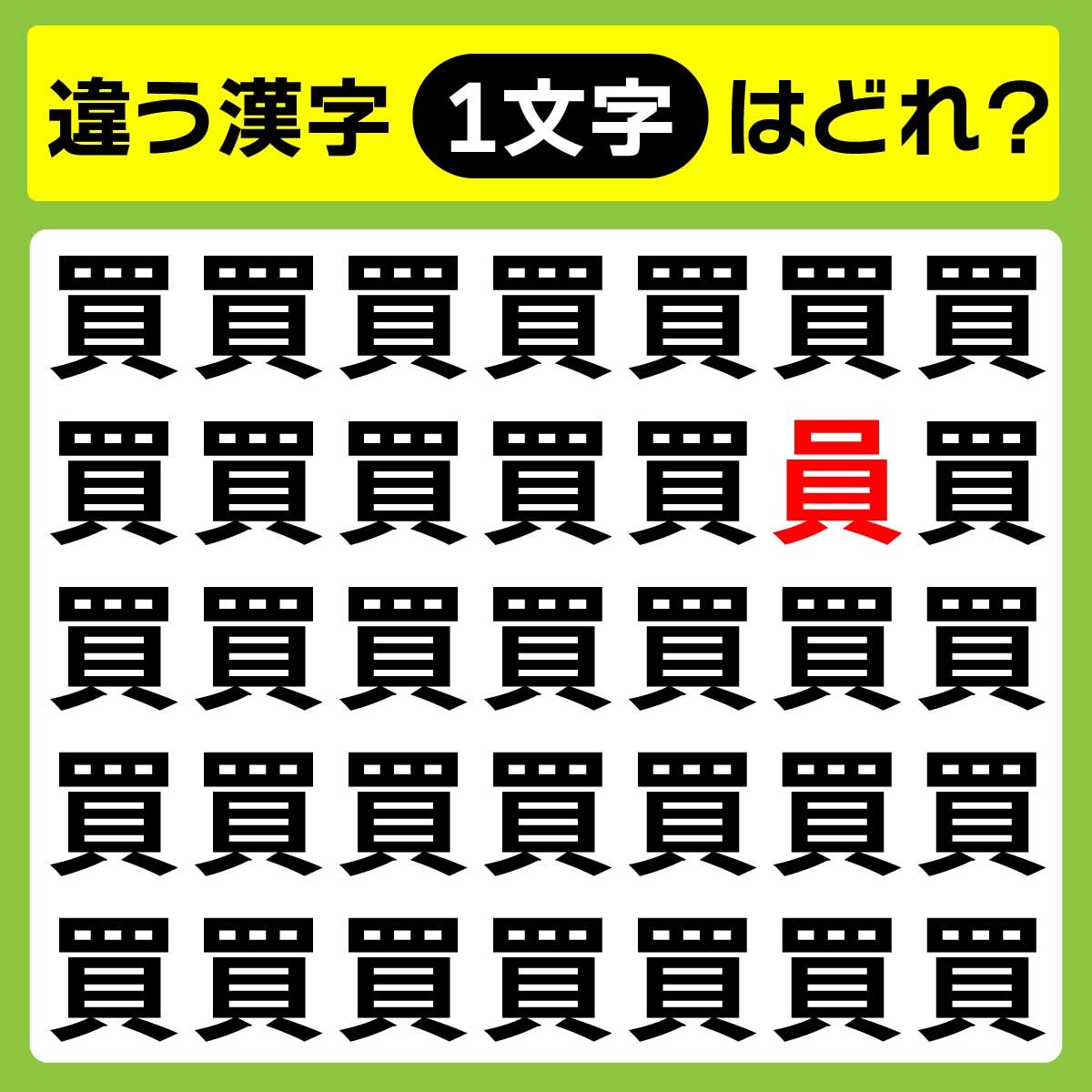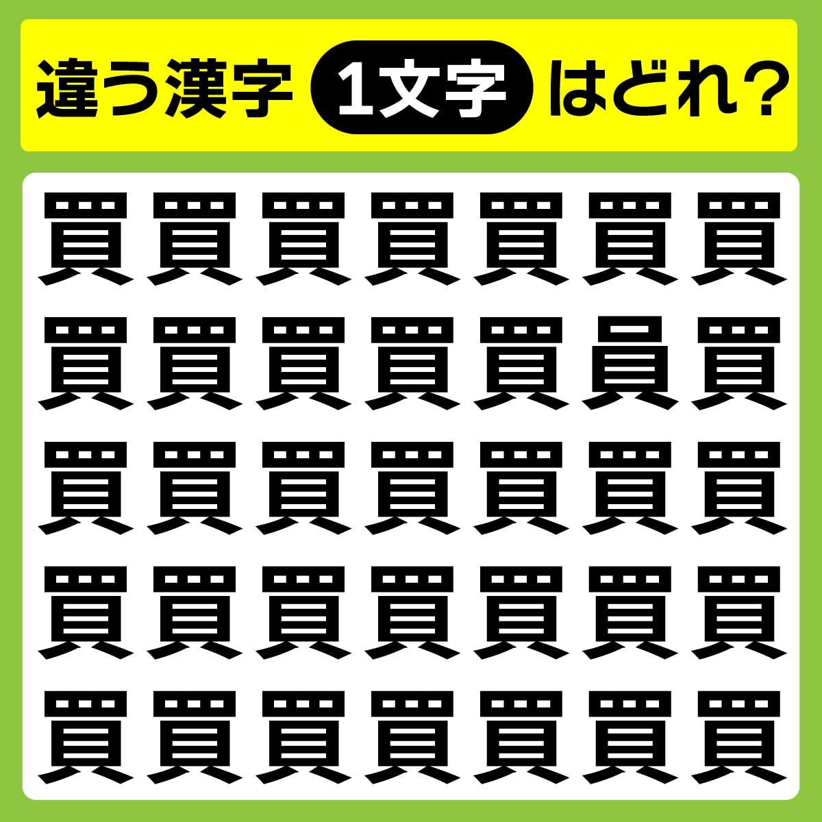 違う漢字は、上から2列目、右から2番目の文字。