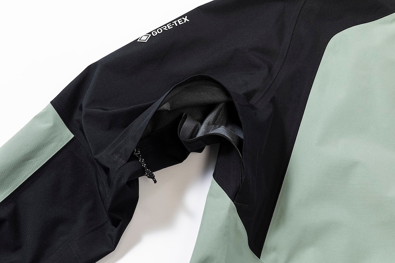 超高耐久の3レイヤーGORE-TEX(裏地微起毛、環境配慮型ePEメンブレン採用)を使ったスノージャケット。グローブをしたままでも操作しやすいフードや裾の調整機能、パウダースカートにはビブパンツと接続するためのフックなどを備え、過酷な雪山で最高のパフォーマンスを発揮。リサイクルポリエステル100%の素材で環境にも配慮しつつ、脇下ベンチレーション、パスポケット、大型ドロップポケットなど、豊富な機能を搭載している。