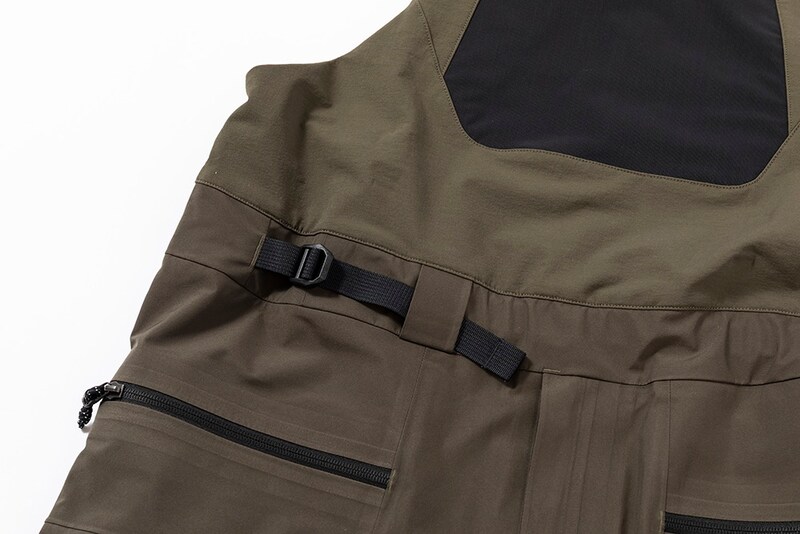 裏地が微起毛の3レイヤーGORE-TEX(環境配慮型のePEメンブレン採用)を使った高耐久スノーパンツ。腰から上のビブ部分は優れたストレッチ性を持ち、ライディング時の動きを妨げない。一体型ベルトでフィット感を微調整でき、立体裁断の膝回りやガセット構造が運動性を高める。フロントのファスナーポケットとドロップポケット、ももポケット、ベルクロの大型カーゴポケットなど高い収納性を備えている。