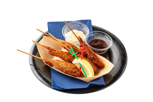 旅人から海賊まで、様々な人が集まる港町の酒場で食べる海鮮を串揚げセットにしました!