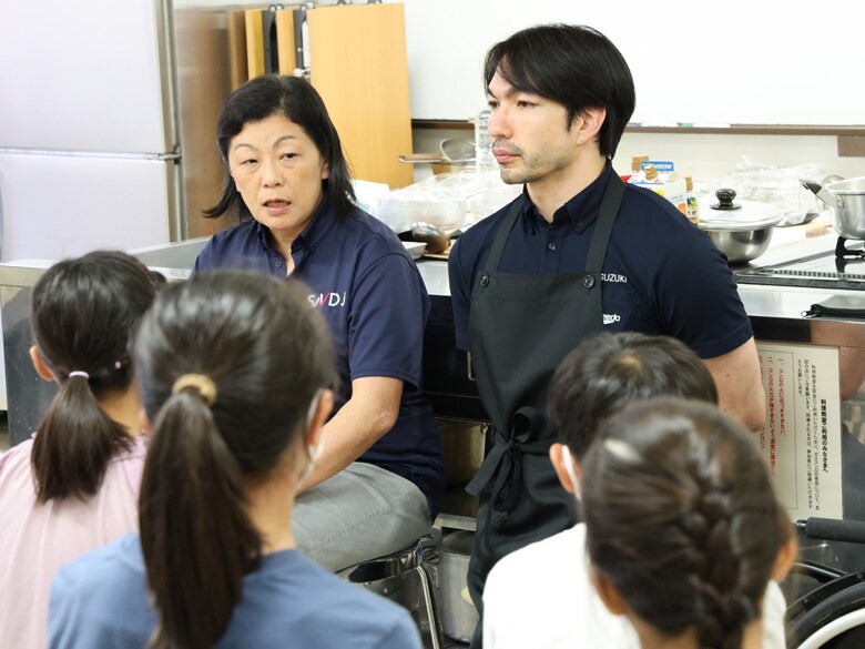 日々、ハードなトレーニングに取り組んでいる鈴木孝幸(以下、鈴木選手)。集まった小学生の親子に、食の重要性をこう伝える。