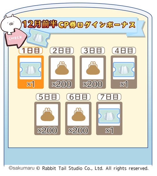旬の具材が獲得できる12月前半CPセットで使えるキャンペーン券が獲得できるログインボーナスです。