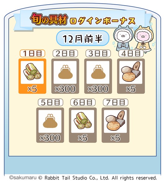 さまざまな新規ログインボーナスが開催!12月前半限定ステージで役立つ具材などもゲットできるので、もれなくログインしよう!