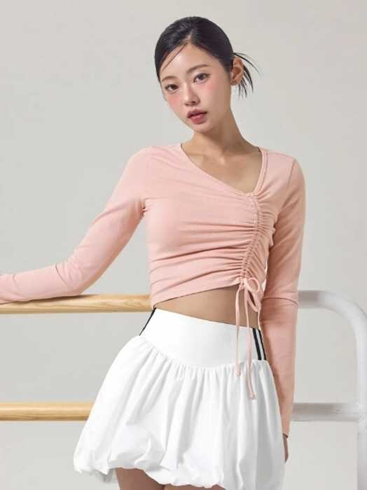洗練されたアシンメトリーの首元と調整可能なシャーリングで女性らしいシルエットを実現。絶妙なクロップド丈でスタイルアップも叶います。