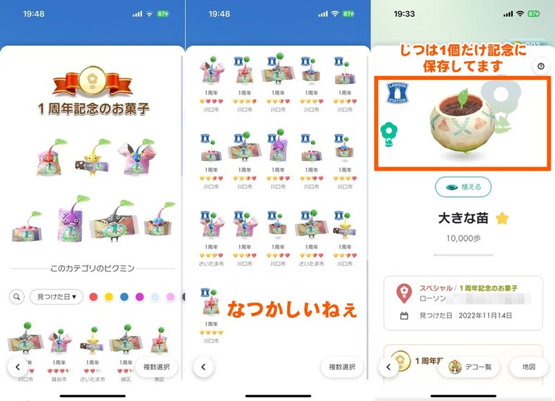 さて、特定のコンビニエンスストアから入手できる周年記念タイプの“お菓子”を身に付けたデコピクミンの始まりは2022年11月にさかのぼる。