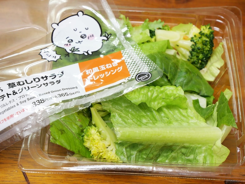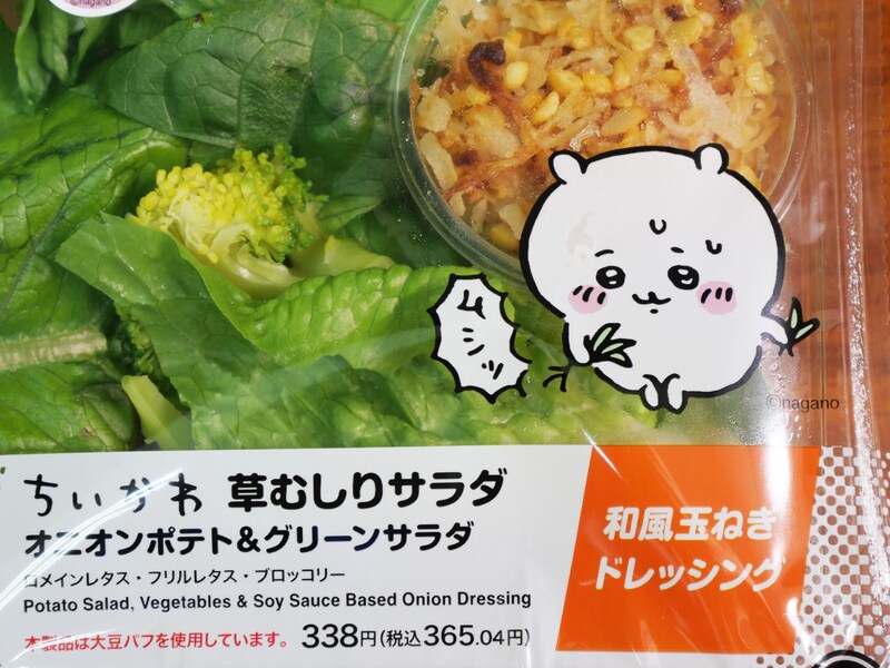 ちいかわコラボの「草むしりサラダ オニオンポテト&グリーンサラダ」が極まっていた。