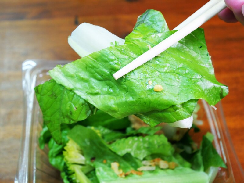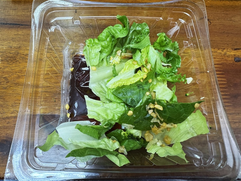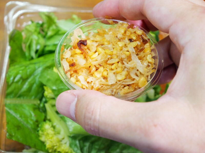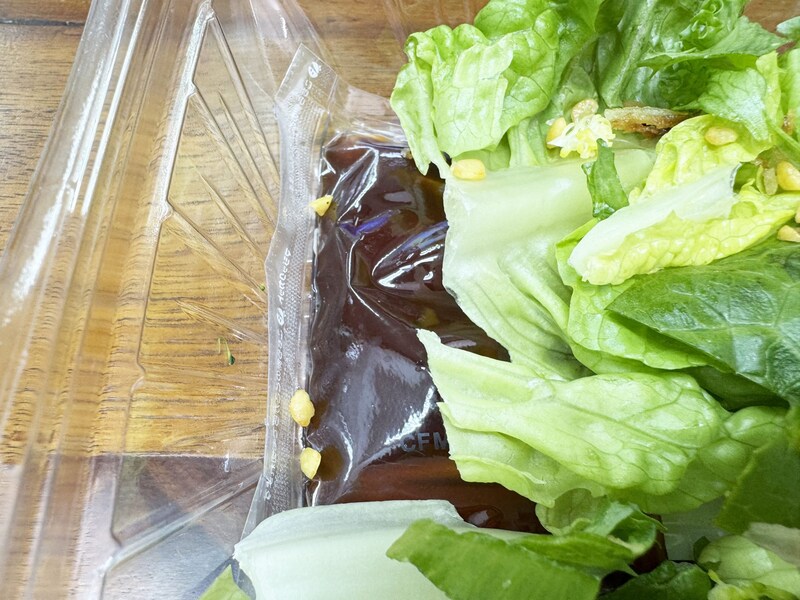 草むしりのビジュアルを損なわないために、容器の底にドレッシングを配置したのだろう。